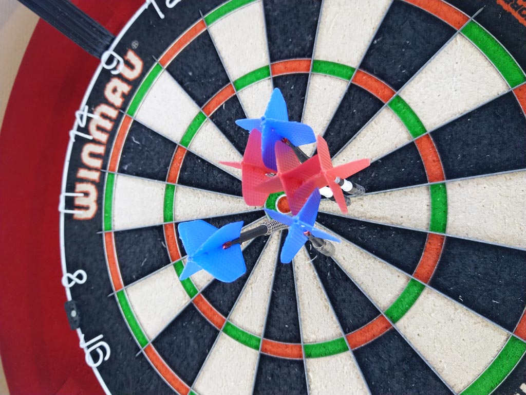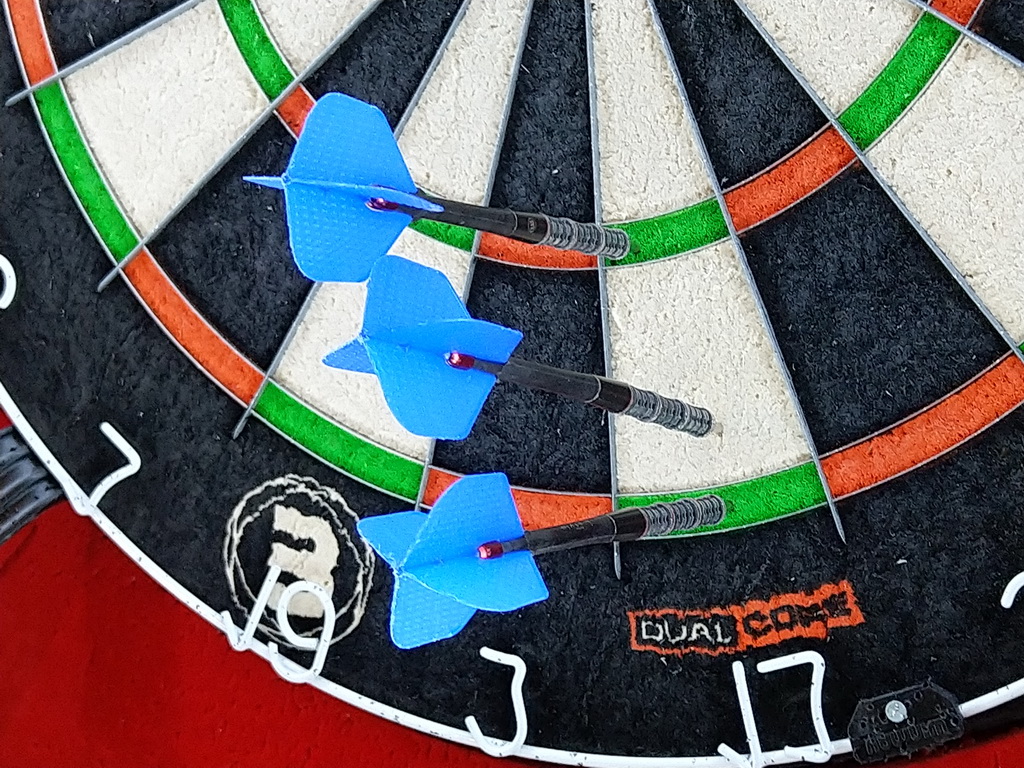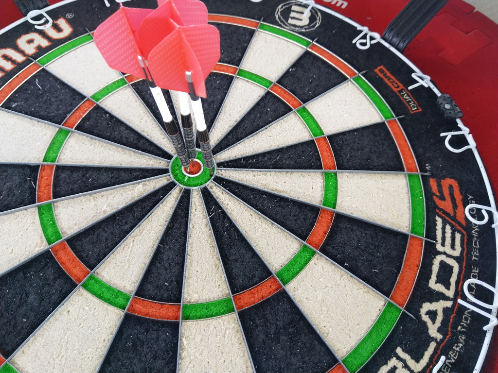 Nachdem ich jetzt einige Würfe mit der neuen Shaft-Flight-Kombination geworfen habe, kann ich sagen dass es ganz gut funktioniert und ich zufrieden bin. Was mir nicht so gefällt ist die Farbe der Flights. Da ist mir der Kontrast zum Board zu schwach.