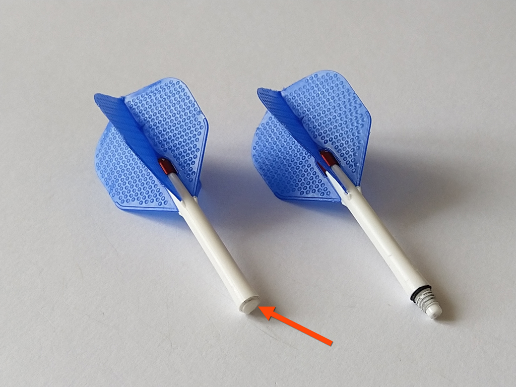 Wie ich im Beitrag vom 29. August 2021 geschrieben habe, möchte ich L-Style L-Shaft Carbon Silent Straight ausprobieren. Der Teil an dem der Flight sich befestigt ist dreht sich. Wenn der Dart durch einen andern Pfleil getroffen wird, dreht der Flight sich weg und macht Platz frei und der Dart prallt nicht ab - so die Theorie. Mal sehen, ob das auch so funktioniert.