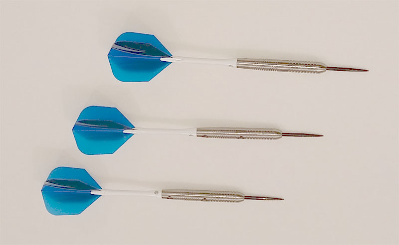 Heute habe ich mir neue Darts gegönnt. Bisher habe ich mit den Darts gespielt, die im Starterpaket mit dabei waren. Es sind die Genesis Tungsen von Harrows geworden. Sie haben 22 Gramm. Also leichter als meine bisherigen. Der Barrel ist flacher. Ich habe sie gleich aufgerüstet. Und zwar mit den Keramic Shafts Medium auch von Harrows. Die hatte ich auch schon bei meinen vorigen Darts.