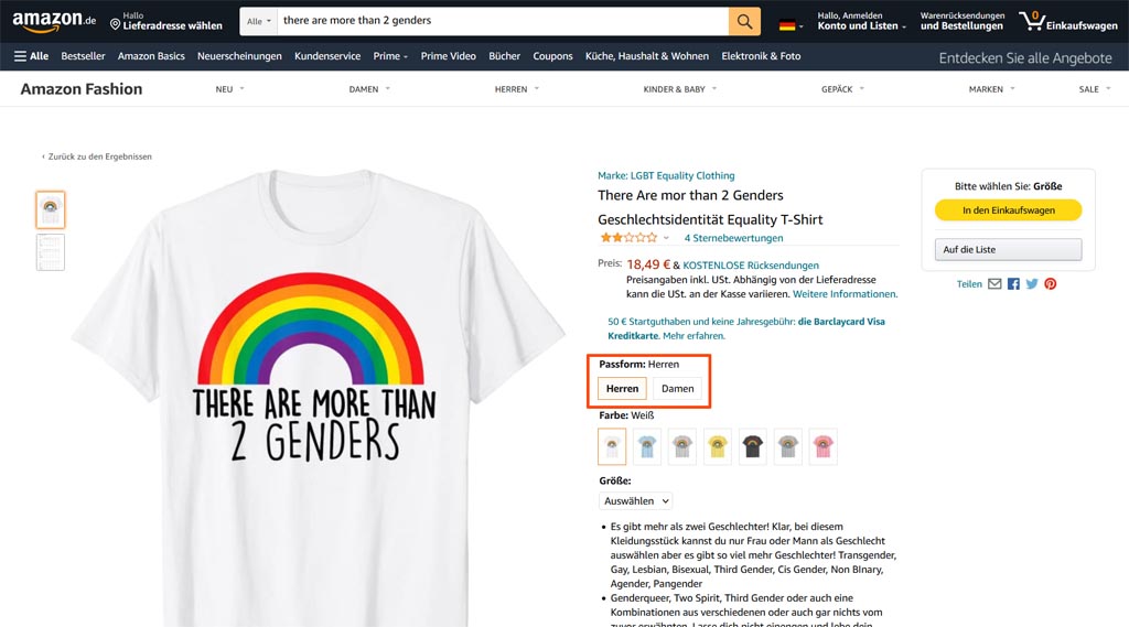 Amazon zieht es durch... und gendert korrekt T-Shirts