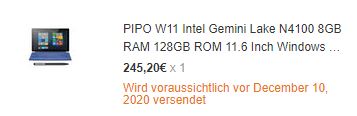 So und jetzt heißt es abwarten, bis das Gerät da ist. Wenn es gut läuft, liegt es dann unter dem Weihnachtsbaum. Wie es in den Aktualisierungen zu sehen ist, wird es wohl eher unterm Narrenbaum, als dem Weihnachtsbaum liegen.