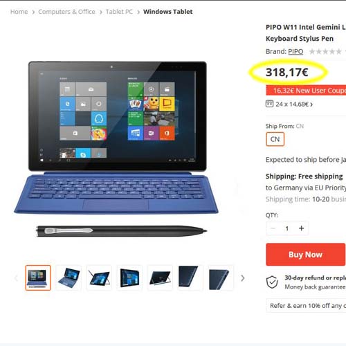 Was dabei zu beachten ist, dass auf den Preis der angezeigt wird, noch die deutsche MwSt. kommt. Und evtl.kommen auch noch Zollgebühren dazu. In meinem Fall beim Kauf des Tablets kommen keine Zollgebühren obendrauf.