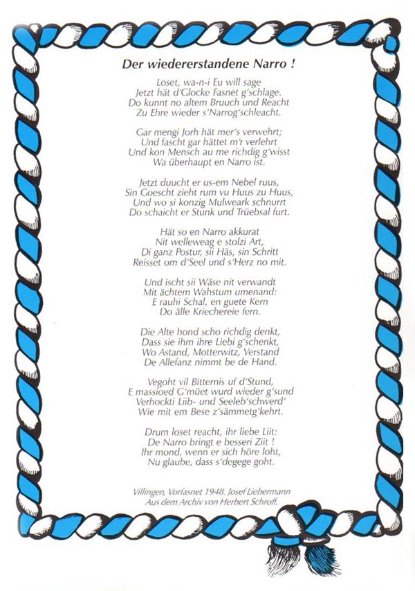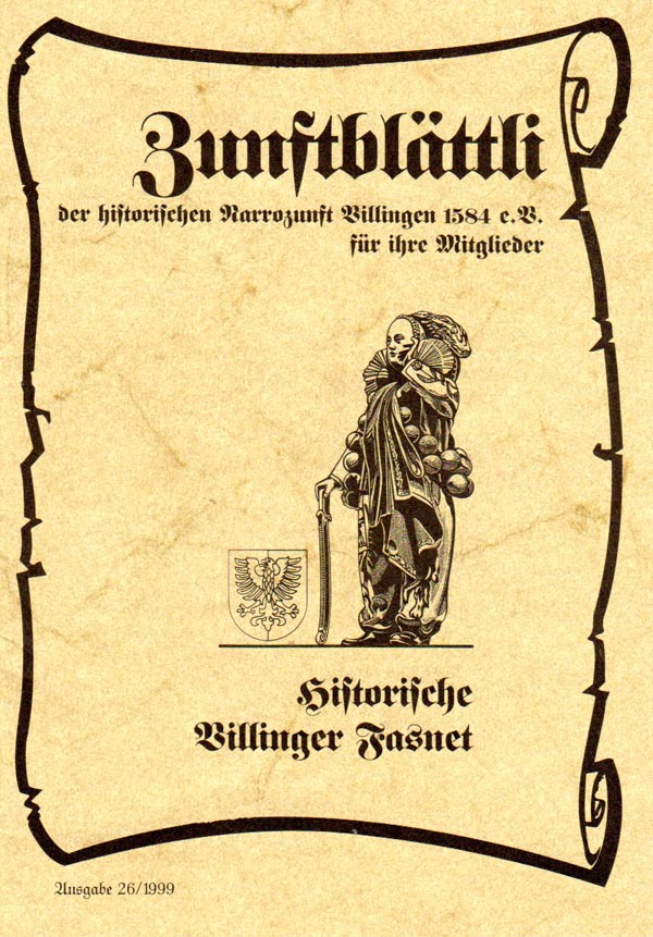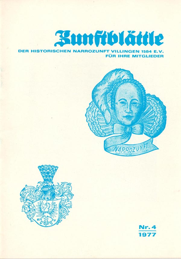 Hier habe ich alle Zunftblättli der Narrozunft Villingen aufgeführt. 1974 erschien das vom Narrenredakteur und späteren Zunftmeister Christian Huonker initiierte Zunftblättle zum ersten Mal. Es sollte den Kontakt zu Mitgliedern intensivieren. Aber gleichzeitig über das Geschehen vor und während der Fasnet informieren.