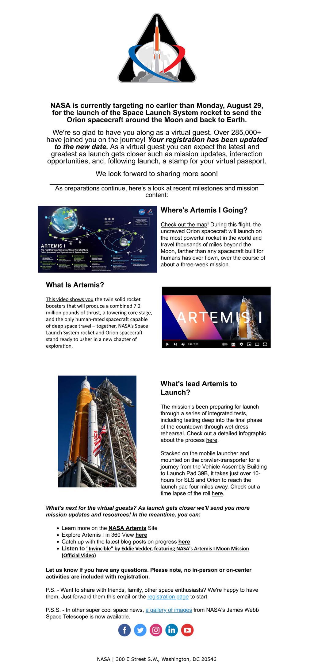 Die NASA hat mich angeschrieben. So wie es aussieht, geht es Ende August 2022 los. Siehe auch Mond II.