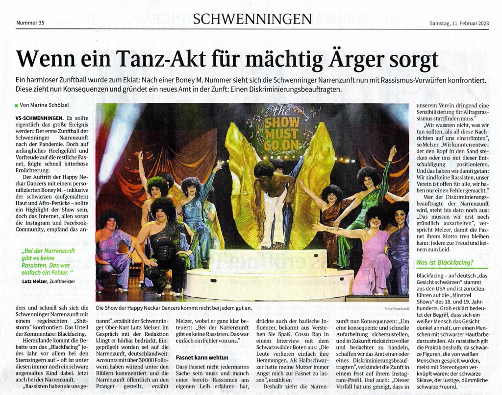 Wie bei unserem Mitbewerber dem Schwarzwälder Boten heute zu lesen war, haben die von der Narrenzunft Schwenningen nicht nur keine Hemmungen sich an fremden Kulturgut zu vergreifen, nein jetzt machen sich sich auch noch des Rassismus schuldig. Siehe hier.