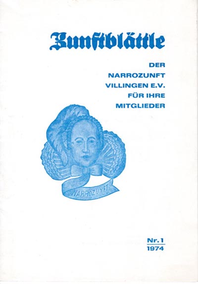 Hier habe ich das ganze Zunftblättle Nr. 1 mit Inhalt. So bekommt man einen kleinen Eindruck wie das 1974 bei der Zunft so lief und wer was zu sagen hatte. Viele in Villingen bekannte Namen sind hier zu finden. Interessant, aber auch sehr traurig ist, dass von den empfohlenen Narrostüble nur noch das Fidelisheim übrig ist.