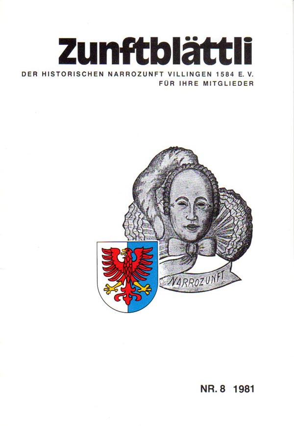 Hier habe ich alle Zunftblättli der Narrozunft Villingen aufgeführt. 1974 erschien das vom Narrenredakteur und späteren Zunftmeister Christian Huonker initiierte Zunftblättle zum ersten Mal. Es sollte den Kontakt zu Mitgliedern intensivieren. Aber gleichzeitig über das Geschehen vor und während der Fasnet informieren.